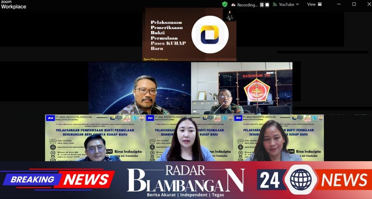 RADAR BLAMBANGAN.COM, | Jakarta, Pada hari Kamis, 15 Januari 2026 – PT. Bina Indocipta Andalan bekerja sama dengan Kanwil DJP Jawa Barat I dan didukung oleh Konsorsium Pendidikan Tinggi dan Cendekiawan Nusantara serta Sekolah Tinggi Ilmu Ekonomi Mahardika Surabaya dan Sekolah Tinggi Perpajakan Indonesia menyelenggarakan webinar dengan topik “Pelaksanaan Pemeriksaan Bukti Permulaan Sehubungan Berlakunya KUHAP Baru”. Kegiatan webinar ini membahas secara mendalam tentang implikasi berlakunya KUHAP Baru terhadap pelaksanaan Pemeriksaan Bukti Permulaan, baik dari aspek konseptual, yuridis, maupun praktis.