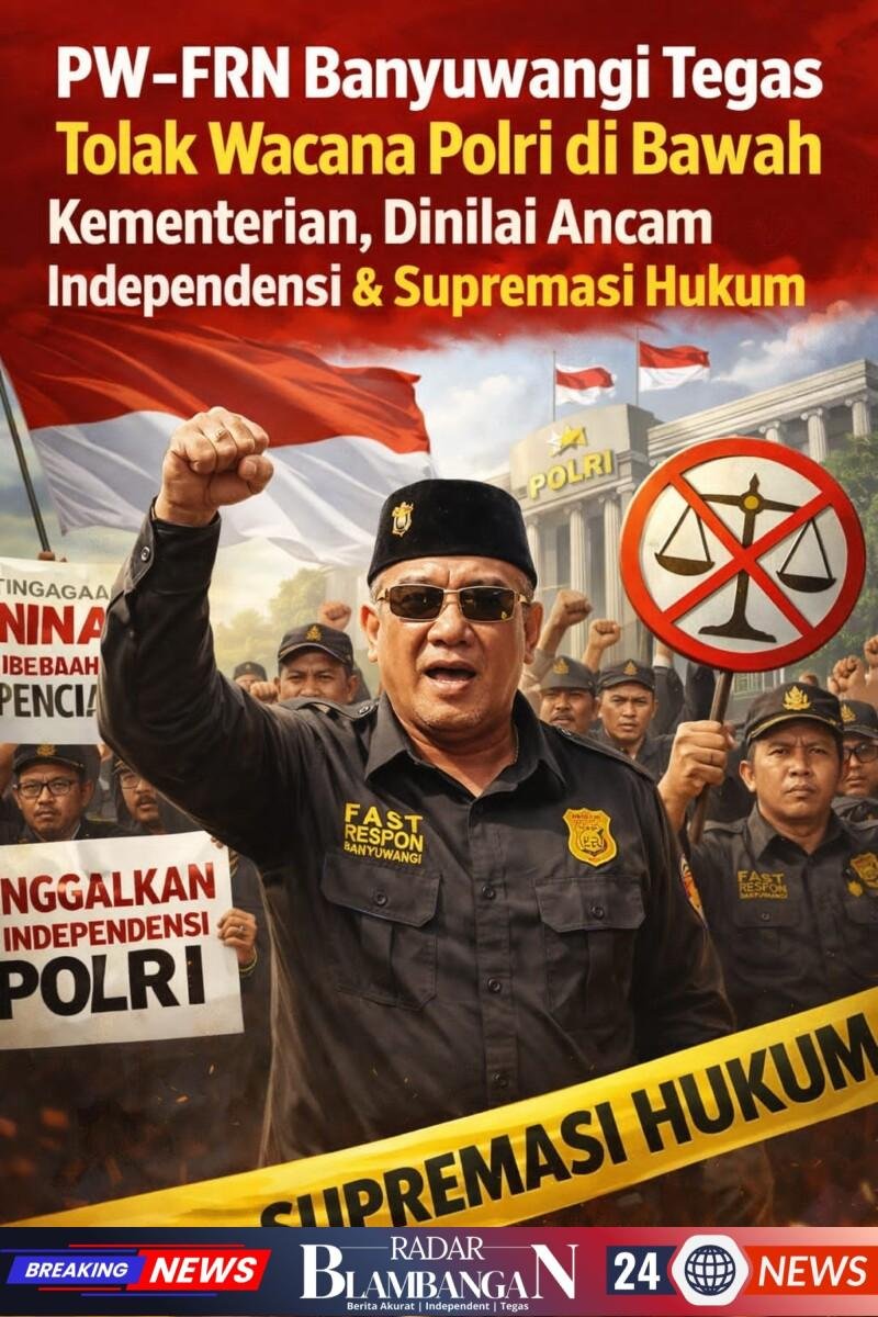 RADAR BLAMBANGAN.COM, | BANYUWANGI — Perkumpulan Wartawan Fast Respon Nusantara (PW-FRN) DPC Banyuwangi menyatakan penolakan tegas terhadap wacana penempatan Kepolisian Negara Republik Indonesia (Polri) di bawah kementerian. Organisasi kewartawanan yang mengusung slogan “Counter Berita Polri” menegaskan bahwa Polri harus tetap berada langsung di bawah Presiden Republik Indonesia, sebagaimana amanat konstitusi dan sistem ketatanegaraan.