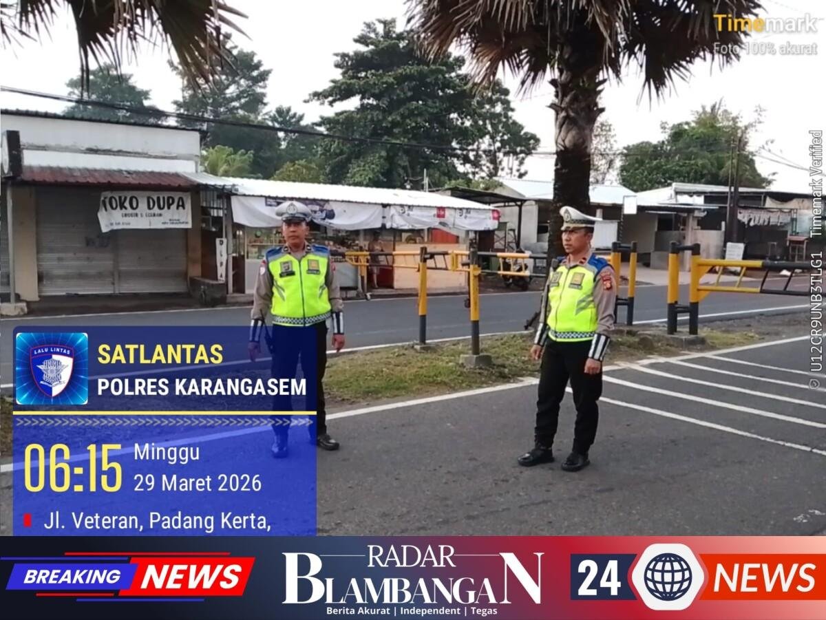RADAR BLAMBANGAN.COM, | Polda Bali – Polres Karangasem – Satuan Lalu Lintas Polres Karangasem melaksanakan kegiatan rutin pengamanan dan pengaturan lalu lintas di jalur Car Free Day Jalan Veteran barat dan timur, Pada hari Minggu, 29 Maret 2026 pagi.