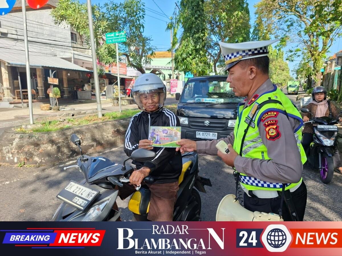 RADAR BLAMBANGAN.COM, | Polres Klungkung – Unit Kamsel Satuan Lalu Lintas Polres Klungkung secara rutin melaksanakan kegiatan penerangan keliling serta pembagian brosur imbauan tertib berlalu lintas di kawasan Simpang Galiran, Kabupaten Klungkung, (17/4).