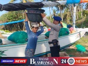 RADAR BLAMBANGAN.COM, | KARANGASEM, — Pada Minggu, (19/10/2025) Satpolairud Polres Karangasem kembali menunjukkan kepedulian dan kedekatannya dengan masyarakat pesisir. turun langsung membantu para nelayan An. NI Nyoman Sarmi Angkat Ikan hasil tangkapan Nelayan untuk Jual ke Pedagang di Pesisir Pantai Yehkali, Seraya Tengah, Karangasem.