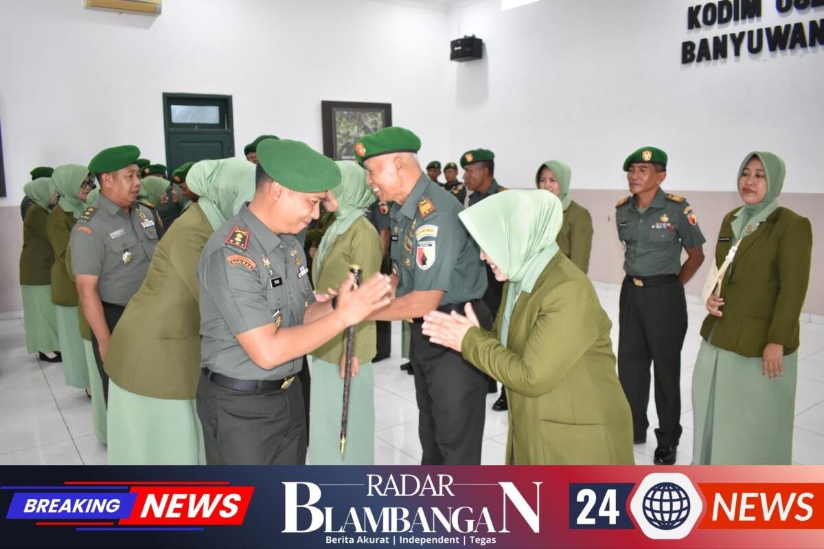 RADAR-BLAMBANGAN.COM, | Banyuwangi – Kodim 0825/Banyuwangi kembali melakukan penyegaran struktur kepemimpinan melalui Serah Terima Jabatan (Sertijab) para Danramil jajaran, Selasa (18/11/2025). Kegiatan yang dipimpin langsung oleh Dandim 0825/Banyuwangi Letkol Arm Tryadi Indrawijaya, S.H., M.I.P. ini berlangsung khidmat di Aula Panglima Sudirman Makodim, Jalan RA Kartini Nomor 02, Kepatihan, Banyuwangi. Sertijab tersebut menjadi langkah penting untuk memperkuat efektifitas komando di wilayah teritorial.