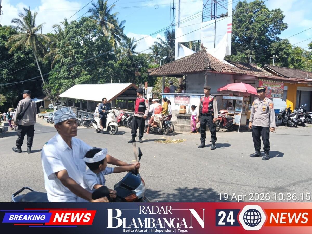 RADAR BLAMBANGAN.COM, | Jajaran Polsek Bebandem menunjukkan komitmennya dalam menjaga kelancaran kegiatan keagamaan masyarakat. Pada Minggu (19/4/2026) pagi, pengamanan ketat dilakukan dalam rangkaian Upacara Agama Usaba Dalem di Desa Adat Bebandem, Kecamatan Bebandem, Kabupaten Karangasem.