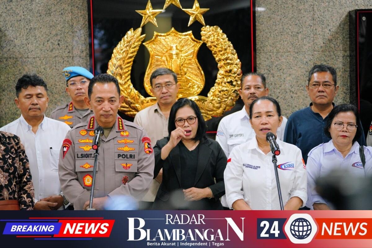 RADAR BLAMBANGAN.COM, | Jakarta – Kapolri Jenderal Listyo Sigit Prabowo menerima audiensi dari Konfederasi Serikat Buruh Seluruh Indonesia (KSBSI). Dalam kesempatan tersebut, Sigit menegaskan bakal terus perkuat sinergitas untuk memperjuangkan hak buruh.