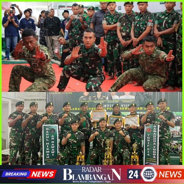 Jamiatul Hadrah Nurul Yaqin Yonif 514/SY berhasil menorehkan prestasi membanggakan dengan meraih Juara 1 kategori banjari campuran dalam Festival ke-VIII Sholawat TNI–POLRI se-Wilayah Jawa Timur yang diselenggarakan oleh Yayasan Darul Hikmah An-Nawawi, Sukun, Malang, Minggu (18/01/2026).