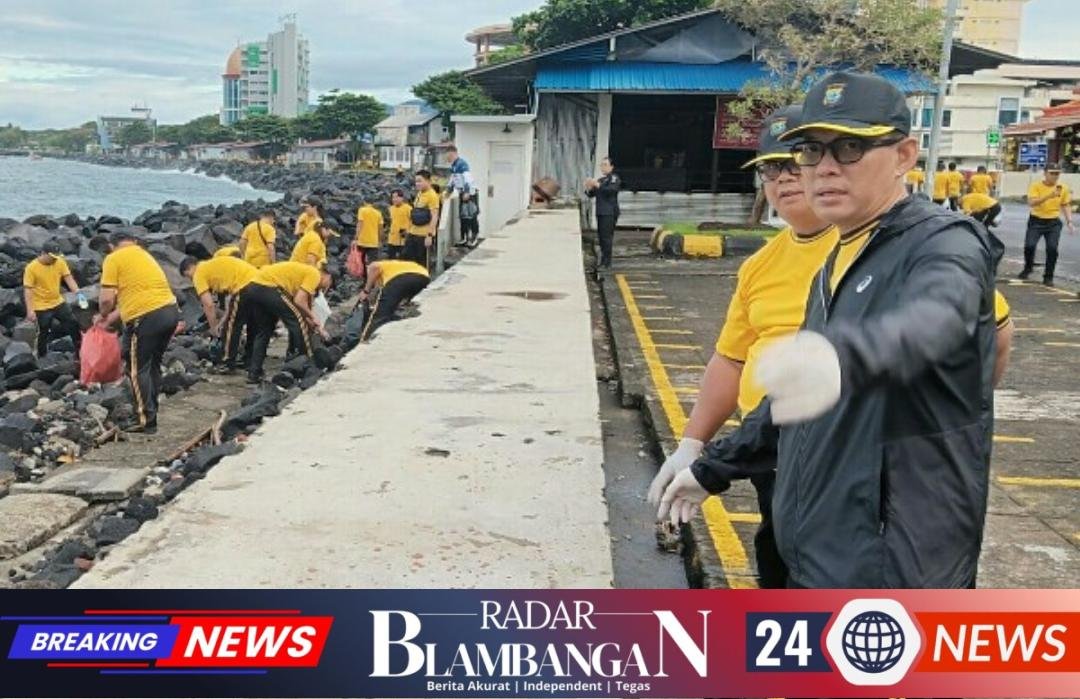 RADAR BLAMBANGAN.COM, | Manado, – Menindaklanjuti instruksi Presiden Republik Indonesia dan Kapolri terkait pelestarian lingkungan, jajaran Polda Sulawesi Utara menggelar aksi kerja bakti atau “korve” besar-besaran di kawasan pesisir pantai Manado pada Jumat pagi (6/2/2026).