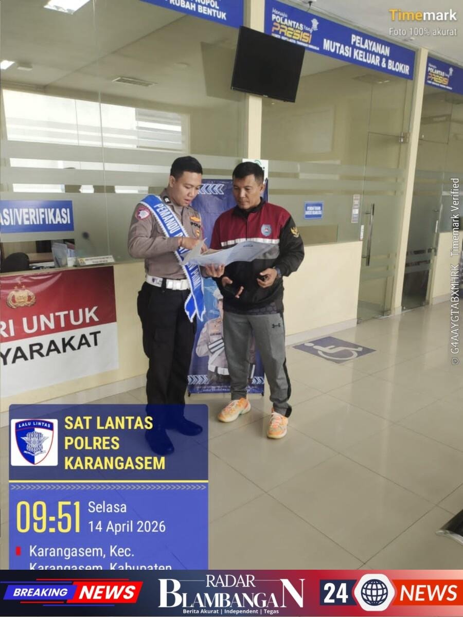RADAR BLAMBANGAN.COM, | Satuan Lalu Lintas Polres Karangasem terus berupaya meningkatkan kualitas pelayanan publik, khususnya dalam pengurusan Buku Pemilik Kendaraan Bermotor (BPKB). Langkah ini merupakan bagian dari komitmen Polri dalam mewujudkan pelayanan yang cepat, mudah, dan transparan kepada masyarakat pada hari Selasa, 14 April 2026.