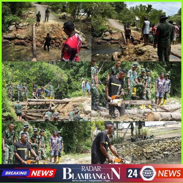 RADAR BLAMBANGAN.COM, | Kaimana PB – Program TNI Manunggal Membangun Desa (TMMD) ke-127 yang dilaksanakan oleh Kodim 1804/Kaimana kembali menunjukkan komitmennya dalam mendukung pembangunan infrastruktur di wilayah pedalaman Papua Barat. Pada Selasa (24/02/2026), kegiatan difokuskan pada perbaikan akses jalan berupa jembatan di Kampung (Kmp) Marsi, Kabupaten Kaimana.