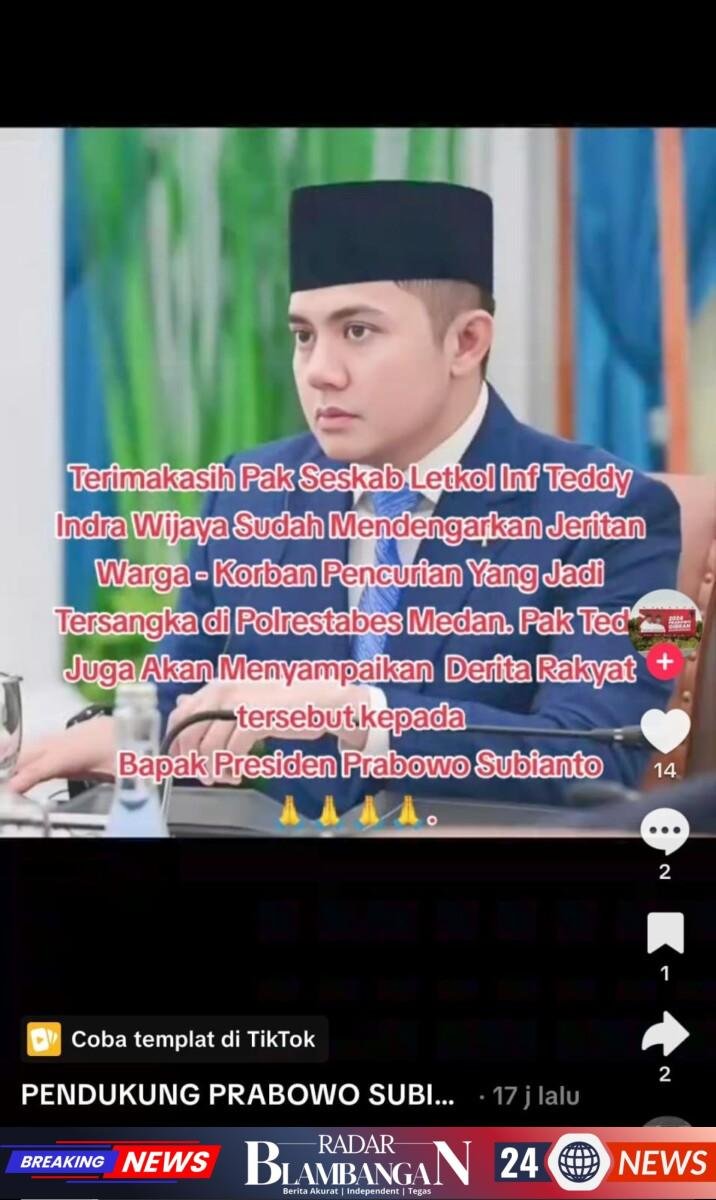 Informasi tersebut pun diunggah dan viral di link https://vm.tiktok.com/ZS9RuJyGqypk1-sywoi/Tiktok @PENDUKUNG PRABOWO SUBIANTO. Pada Sabtu 21 Maret 2026. Dimana dalam unggahan akun tiktok tersebut dijelaskan “Terimakasih Pak Tedy Semalam di Medan Mendengarkan Derita Warga/ Masyarakat Soal Kasus Korban Pencurian Yang Disuruh Polisi Tangkap Maling Jadi Tersangka.