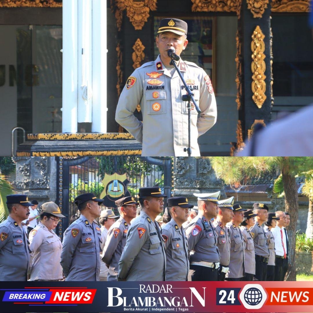 RADAR BLAMBANGAN.COM, | KLUNGKUNG, -– Wakapolres Klungkung Kompol I Made Ariawan P., S.H. memimpin pelaksanaan apel jam pimpinan pada hari Senin, yang diikuti oleh para pejabat utama Polres Klungkung, para Kapolsek jajaran, serta seluruh personel Polres Klungkung, (3/11).